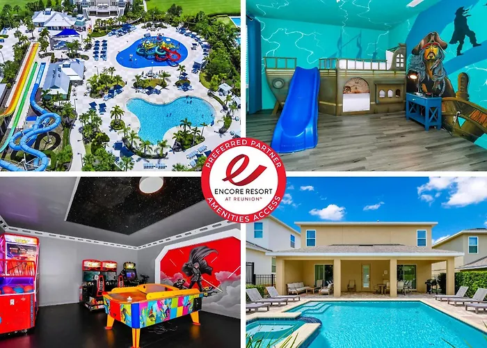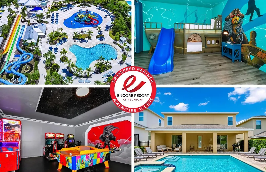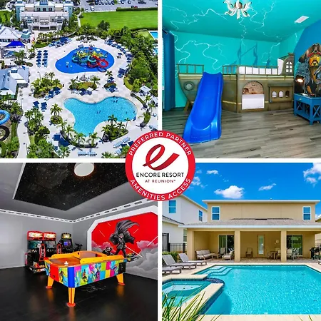 Located 2.8 km from Reunion Resort Water Park, the 10-bedroom Glorious Home Near Disney With Private Pool, Game Room, Themed Rooms And Water Park Access At Encore Resorts Reunion - 7643Wi features Wi-Fi, a lift and a cash machine. Providing an outdoor pool, this property also offers lawn tennis for active guests.